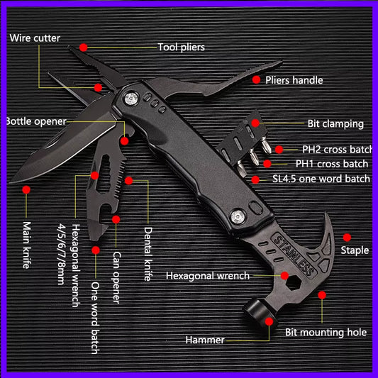 Multifunctional Pliers Stainless Steel Claw Hammer Tool with Nylon Sheath for Outdoor Survival Camping Hunting Hiking Multitool