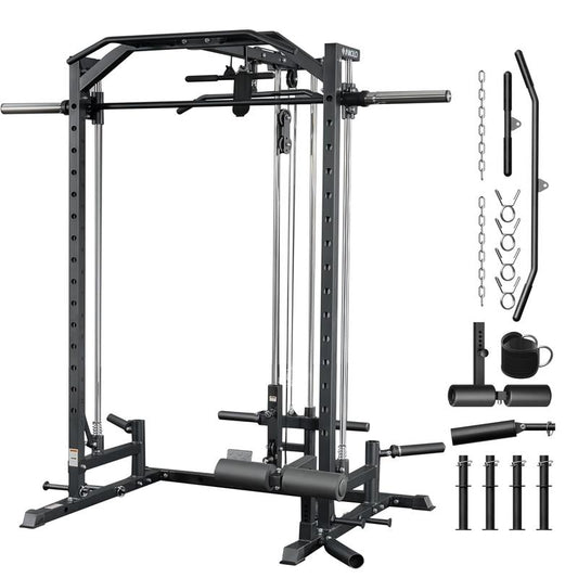 MIKOLO Smith Machine Power Cage for Home Gym 1:1 Ratio Strength Trainer with 8 Attachments Space Saving Squat Rack Alloy Steel Constructionmikolo